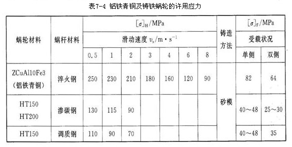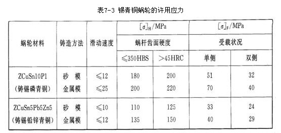 錫青銅:減摩性、耐磨性好,抗膠合能力強(qiáng),但價(jià)格高,用于相對(duì)滑動(dòng)速度vs≤25m/s的高速重要蝸桿傳動(dòng)中;