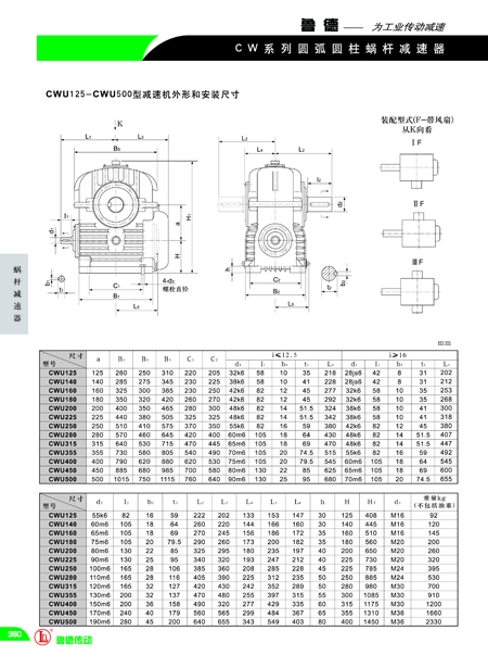 CWU圓弧圓柱蝸桿減速機(jī)外形參數(shù)-魯?shù)聜鲃?/h1>