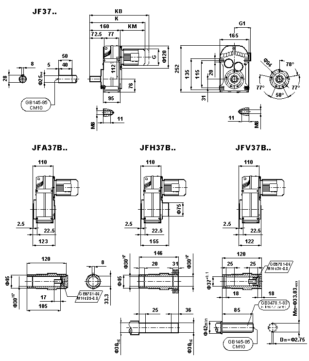 外形安裝尺寸(F37、FA37B、FH37B、FV37B、FF37、FAF37B、FHF37B、FVF37B、F..37/G、FA37、FH37、FV37、FAZ37、FHZ37、HVZ37)