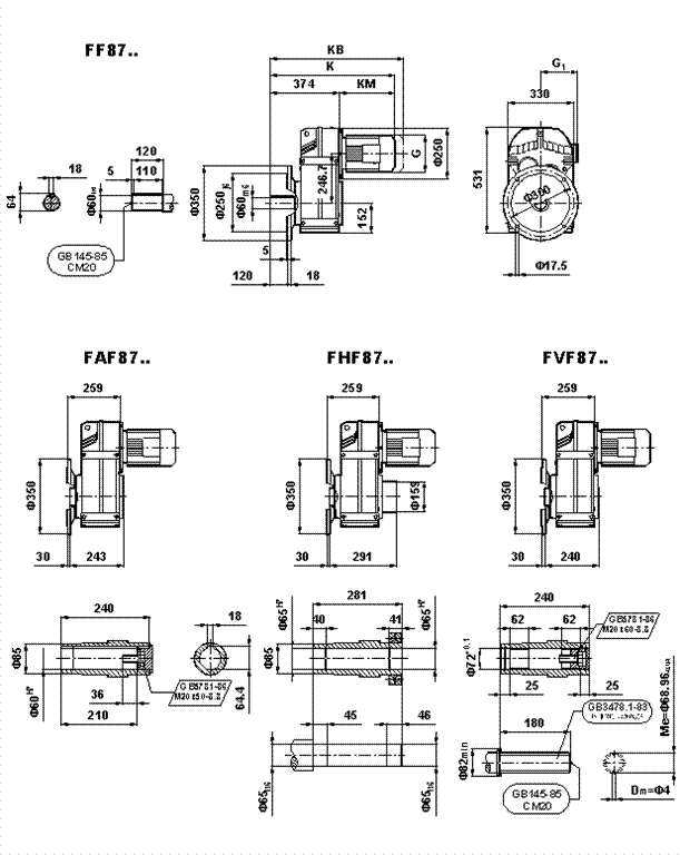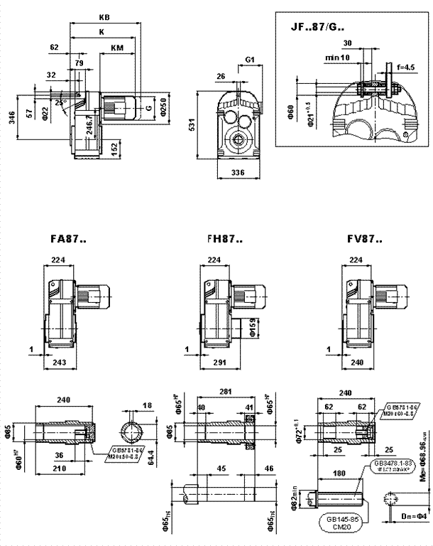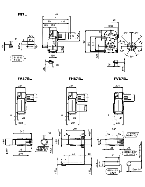 F系列減速機,F系列斜齒輪減速機,F系列傘輪減速機;外形安裝尺寸(F87、FA87B、FH87B、FV87B、FF87、FAF87B、FHF87B、FVF87B、F..87/G、FA87、FH87、FV87、FAZ87、FHZ87、HVZ87)