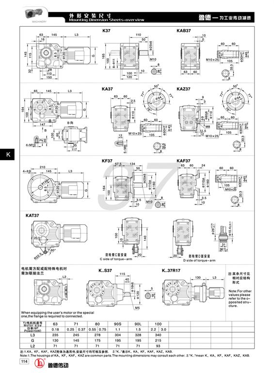 K37斜齒-螺旋錐齒輪減速機采用帶筋高剛性鑄鐵殼體,帶筋箱體更利于減速機散熱,模塊化設計,整機安裝方便,易于維護使用。極多電機組合、安裝位置和結構方案滿足多種不同使用工礦安裝。