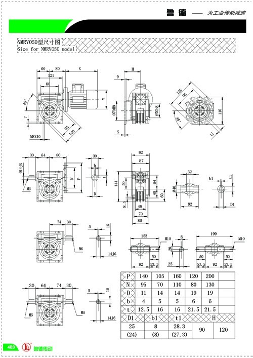 中 心 距 NMRV050 | 速比(i) | n2(rpm) | M2(N.M) | 電機(jī)功率(KW) |