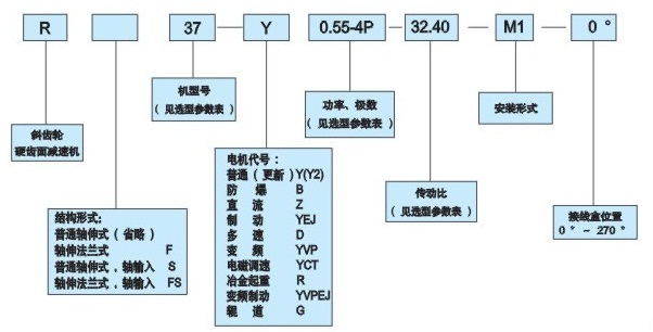 R系列斜齒輪減速機(jī)型號標(biāo)記方法、安裝形式、電機(jī)接線盒位置
