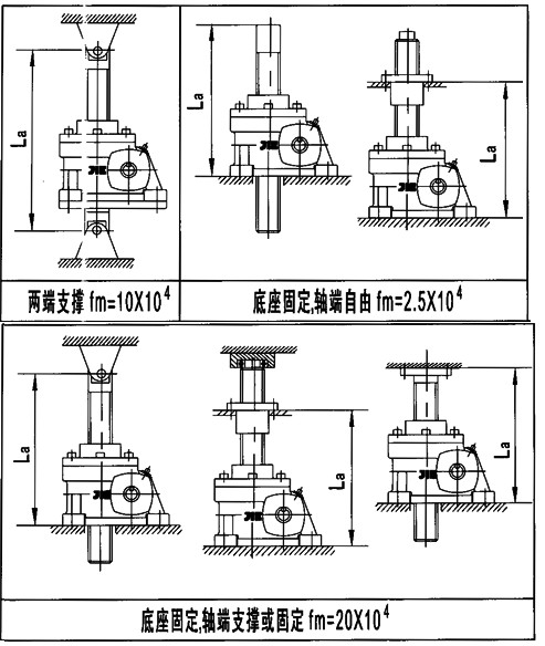 Pcr—絲桿臨界載荷(N fm—長度系數(詳見附表4 d—絲桿底徑(mm(詳見附表5