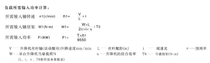 蝸輪絲桿升降機(jī)選型時(shí)主要選擇參數(shù)為:起升負(fù)荷(KN)、螺桿行程(mm)、起升速度(m/min)。
