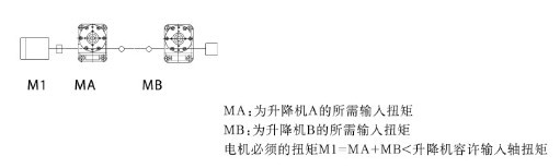 (3)當(dāng)升降機(jī)傳動(dòng)配置為串聯(lián)時(shí)(即同一軸線配置了兩個(gè)或以上數(shù)量的升降機(jī))如圖須對(duì)各