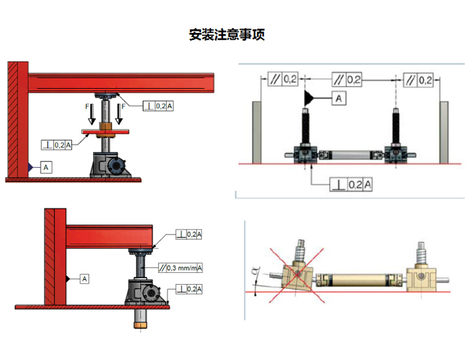 絲桿升降機(jī)試運(yùn)行前_清潔絲桿,條件允許的話在整個(gè)行程長(zhǎng)度上噴上潤(rùn)滑脂,初次測(cè)試提升系統(tǒng)不要加負(fù)載,測(cè)試中逐漸增加負(fù)載并檢查每個(gè)發(fā)熱點(diǎn)和齒輪箱的溫升,檢查功能和每個(gè)限位開關(guān)及所有聯(lián)接螺栓的牢固性。升降機(jī)如安裝在狹窄的地點(diǎn)使用應(yīng)檢測(cè)它的旋轉(zhuǎn),用手驅(qū)動(dòng)使系統(tǒng)運(yùn)行完整的行程,力量要輕松平穩(wěn)。