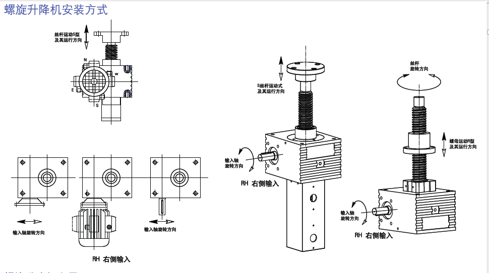S型螺旋升降機(jī)的原理為蝸桿驅(qū)動蝸輪旋轉(zhuǎn),蝸輪中間為內(nèi)螺紋孔機(jī)構(gòu)(與絲杠相嚙合),再將旋轉(zhuǎn)運(yùn)動傳遞至絲杠上下直線運(yùn)動。
