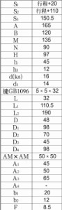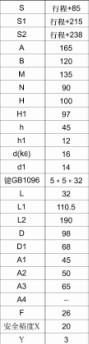 _起升力為25KN,_拉力25KN。螺桿螺紋尺寸為Tr30*6。普通速比為6:1,蝸桿每轉行程1.0mm;慢速比為24:1,蝸桿每轉行程0.250mm。拉力負荷時螺桿的_伸長1500mm。_許用功率1.45kw。普通速比效率23%;慢速比效率14%。