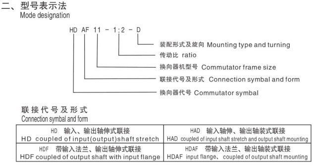 HD螺旋錐齒輪轉向器箱體形狀為六面體,能適應不同方位的安裝使用。共有七種規(guī)格,選型范圍大,輸出軸型式多樣,可滿足多種場合需要,可實現(xiàn)減速和增速兩種傳動方式。當速比不為1:1時,橫軸輸入、縱軸輸出為減速,縱軸輸入、橫軸輸出為增速。換向器可正、反運轉,低速或高速傳動平穩(wěn),而且噪音低,承受力大。