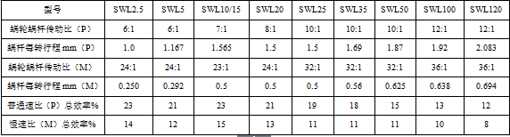 通常絲桿升降機的速比有快速(P)和慢速(M)兩種,在同一個型號下的絲桿升降機,普通速比的傳動要比慢速的小,蝸桿的每轉要比慢速的長一些,慢速的絲桿升降機在總效率上比不上普通速比的